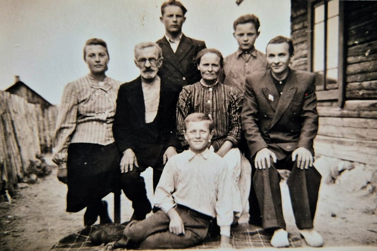 Kadangi tėvas buvo ne tik kaimo ūkininkas, bet ir kaimo siuvėjas, gyvenome neblogai. Bet kai ketvirtą karo dieną sudegė visas kaimas, vertėmės gana sunkiai. Du jaunesni už mane broliai išėjo pas ūkininkus piemenauti, o man buvo leista mokytis.