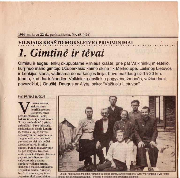 Vilniaus krašte lenkinimo politika pasireiškė ne tik uždarant lietuviškas ir steigiant lenkiškas mokyklas, bet ir slopinant kultūros židinius. Prisimenu, kai tėvo gaunamame laikraštyje „Vilniaus rytojus“ dėl cenzūros būdavo mažesnės ir didesnės baltosios dėmės. Buvo tvirtinama, kad tautybę galima pasirinkti, pakeisti (aišku – iš lietuvių į lenkų, o ne atvirkščiai). Kai kuriais atvejais vaikų pavardės priklausydavo nuo kunigo ir krikšto tėvų (kūmų) tautybės. Taip ir mūsų šeimoje keturi broliai gavo skirtingas pavardes: Buckus, Butkevičius, Buckus-Butkevičius ir Butkevičius-Buckus. Sesuo Genė turėjo Butkevičiūtės pavardę. Tėvui Florijonui Buckui prieš pat karą lenkai pakeitė pavardę į Bucko, o 1939 m. Smetonos valdžia – į Butkaus. Tada Kazlauskai tapo Ožiūnais, Jankauskai – Jankūnais, Černiauskai – Černiais ir t.t. Kad retas tėvo vardas – Florijonas – neišnyktų, „neišsikasavotų“, juo pavadino du sūnus, duodami kiekvienam dar po antrą skirtingą vardą. Taip atsirado Florijonas Juozas ir Florijonas Feliksas. Mano broliui Leonui ir man šį vardą davė suteikiant Sutvirtinimo sakramentą. Nors mūsų šeimoje šventasis Florijonas – ugniagesių patronas – buvo labai pagerbtas, namai degė kelis kartus.